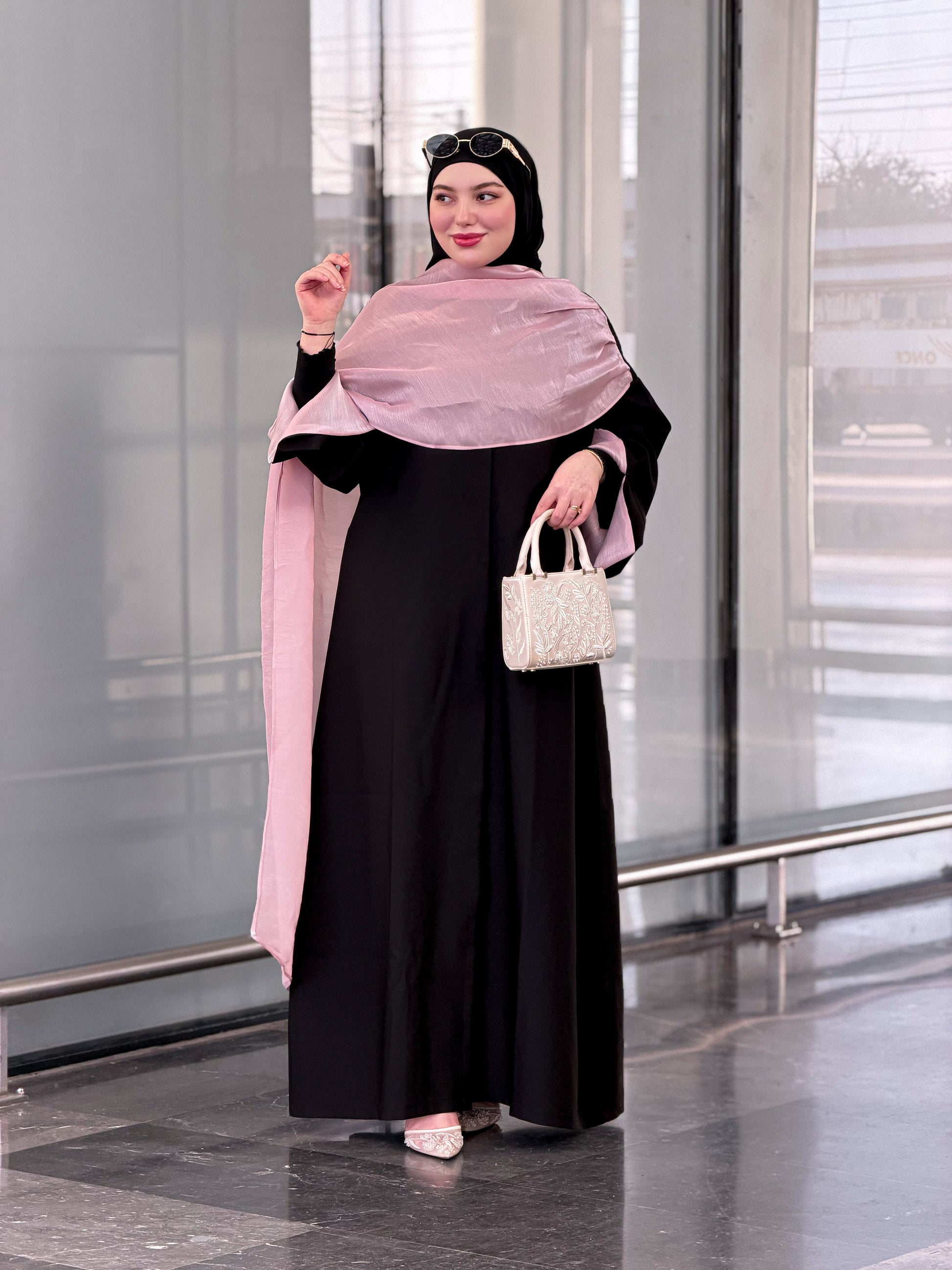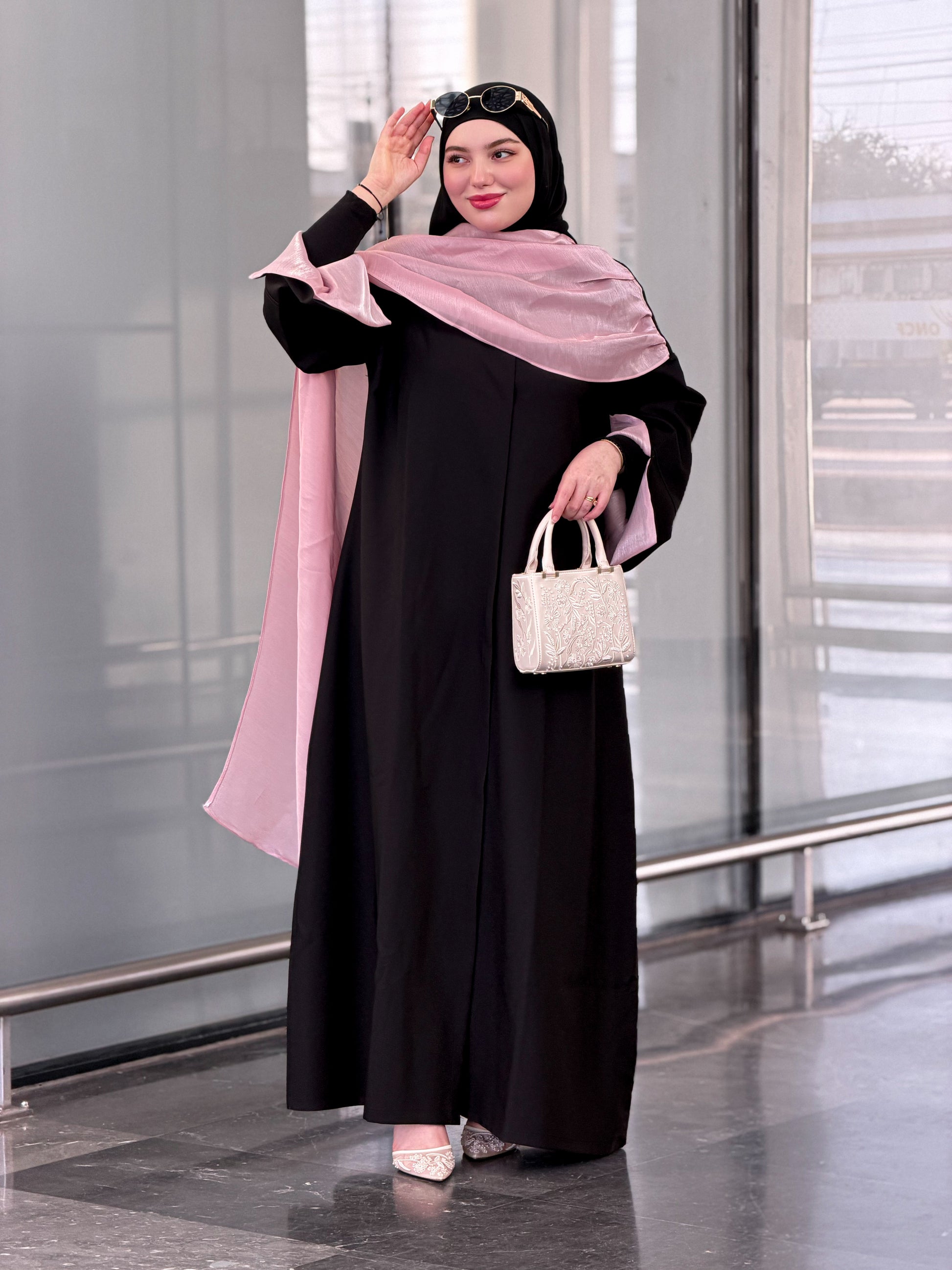Abaya pink écharpe organza premimum Ramadab Aïd🩷