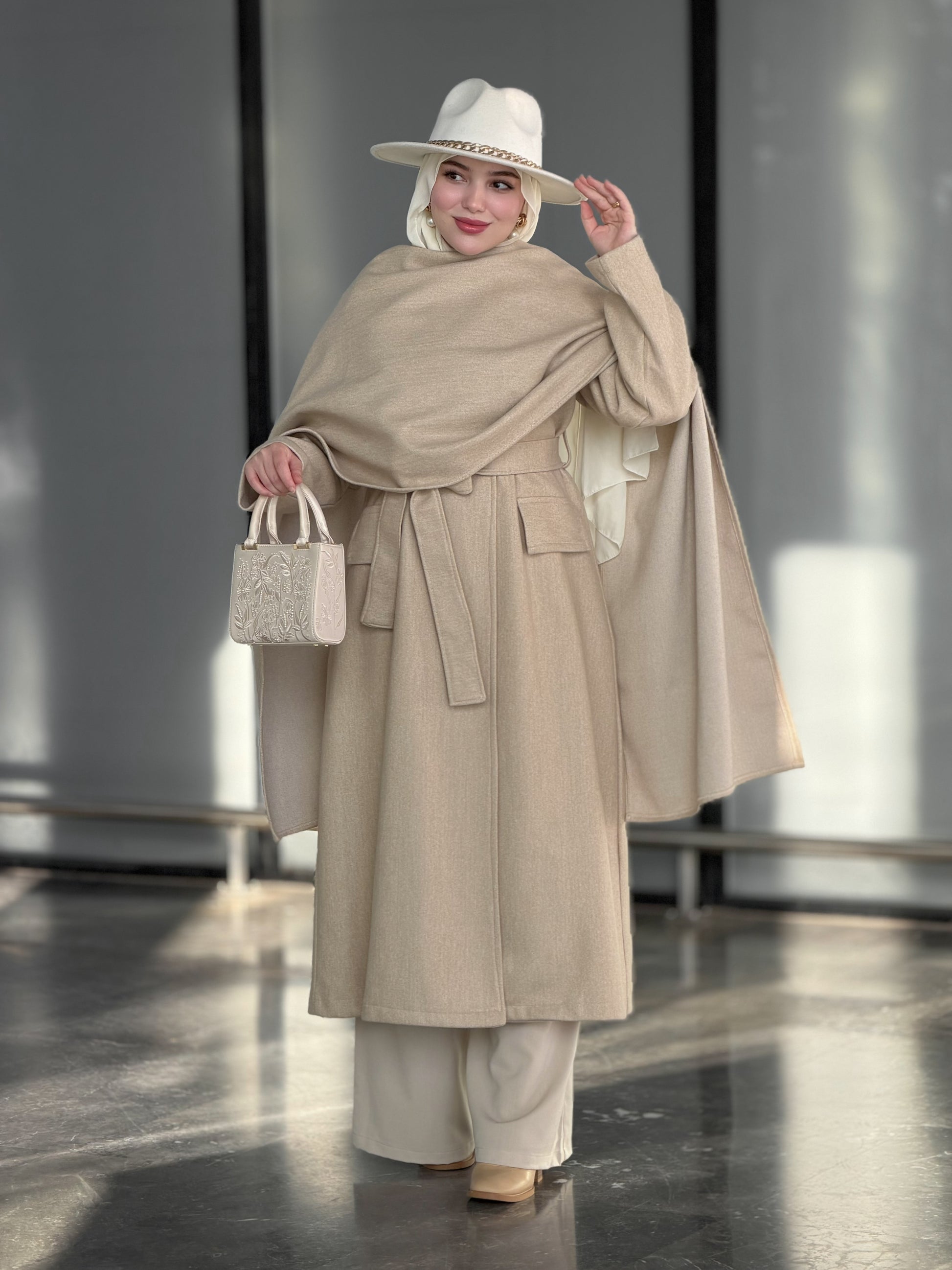 Aurore camel manteau & châle en cachemire