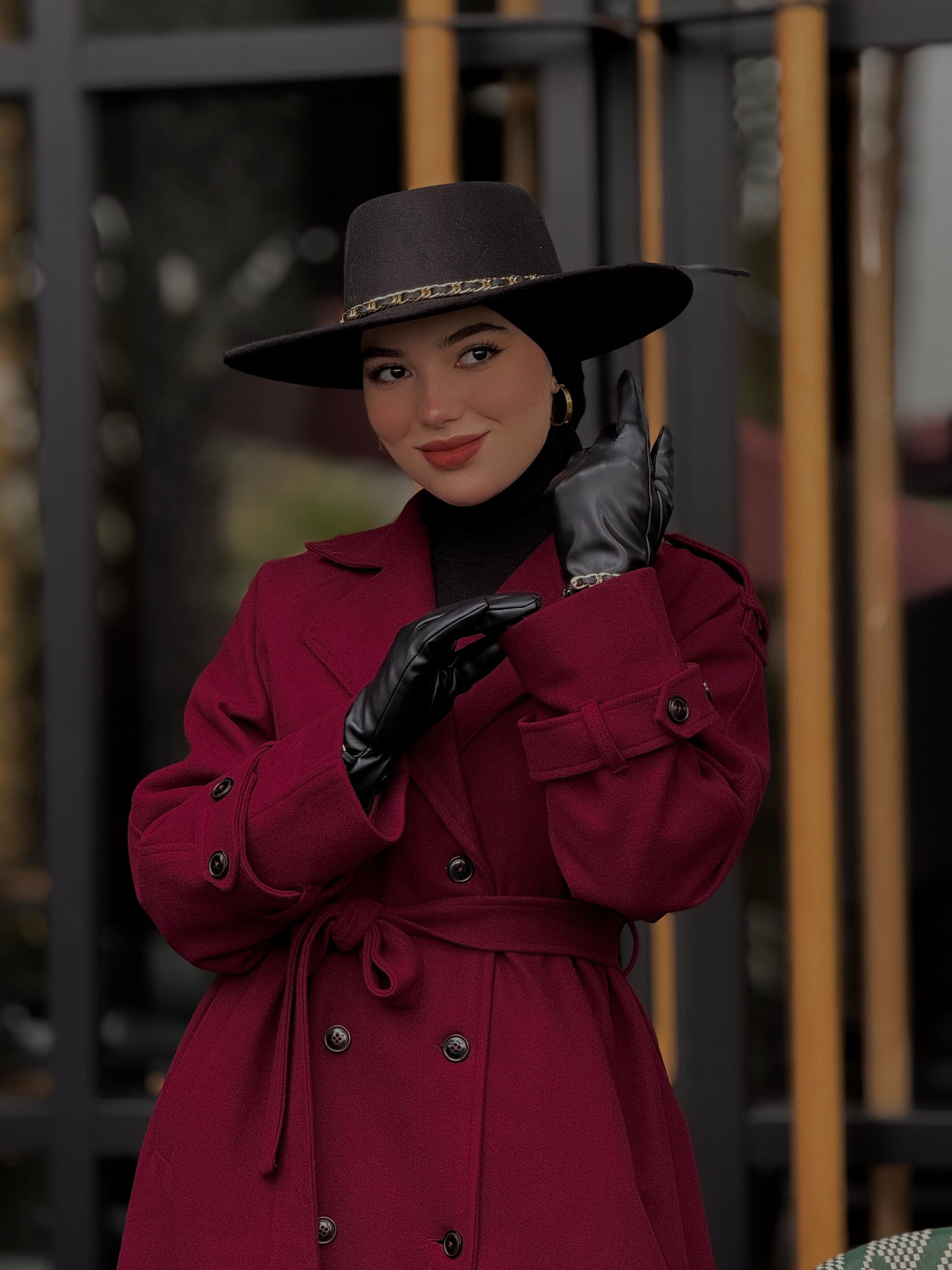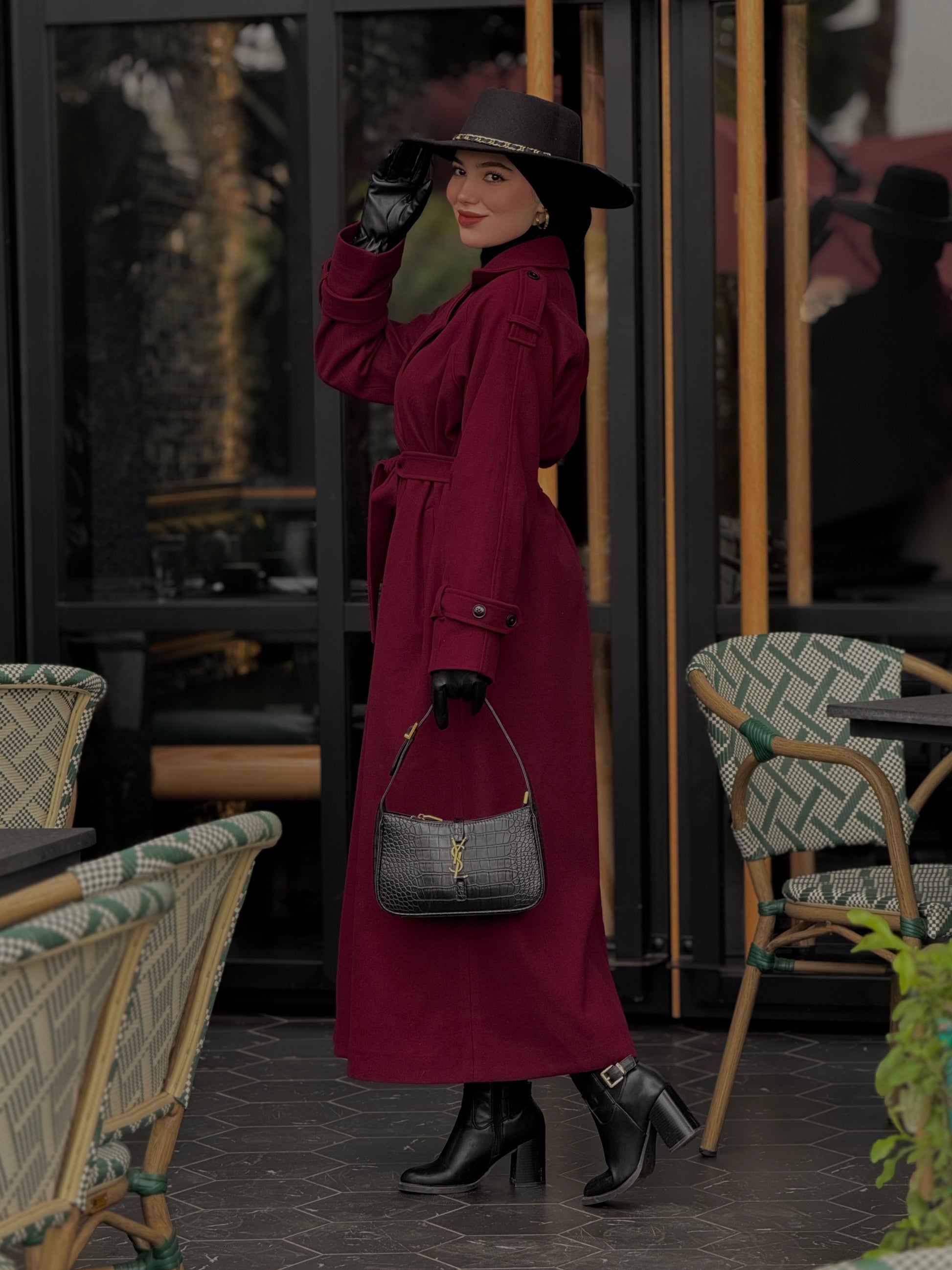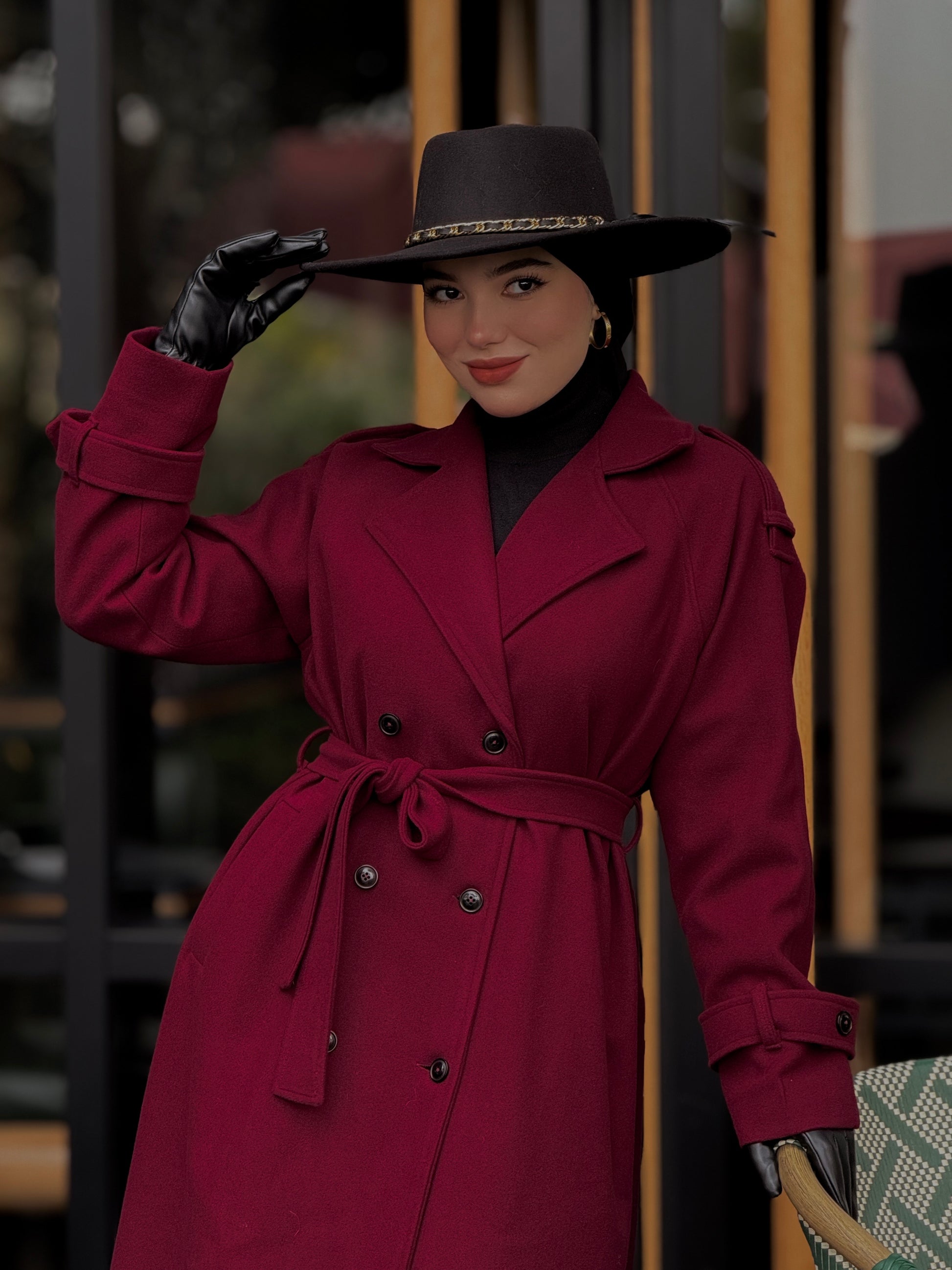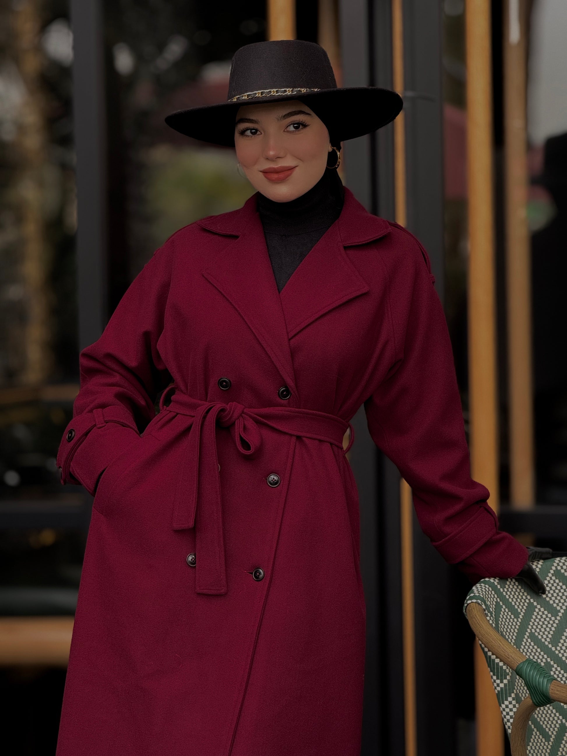 Baline - manteau bordeau en vrai cachemire avec doubleur