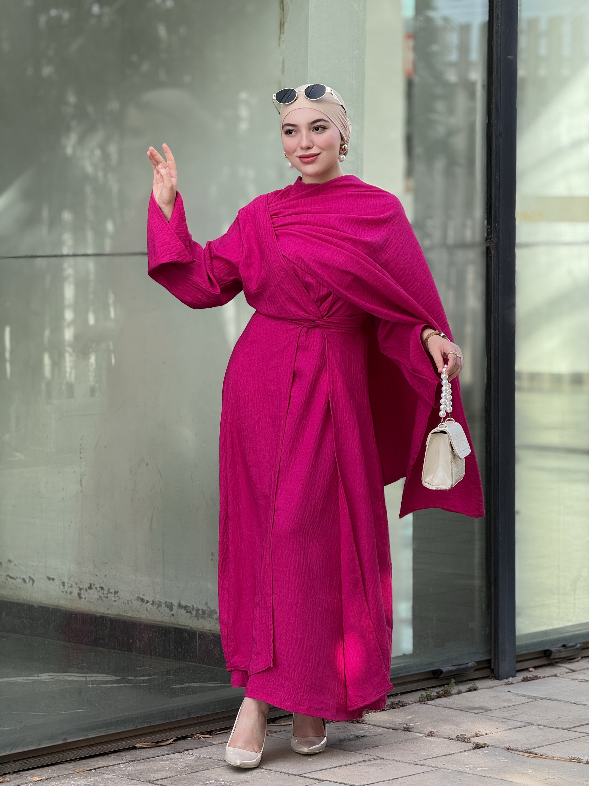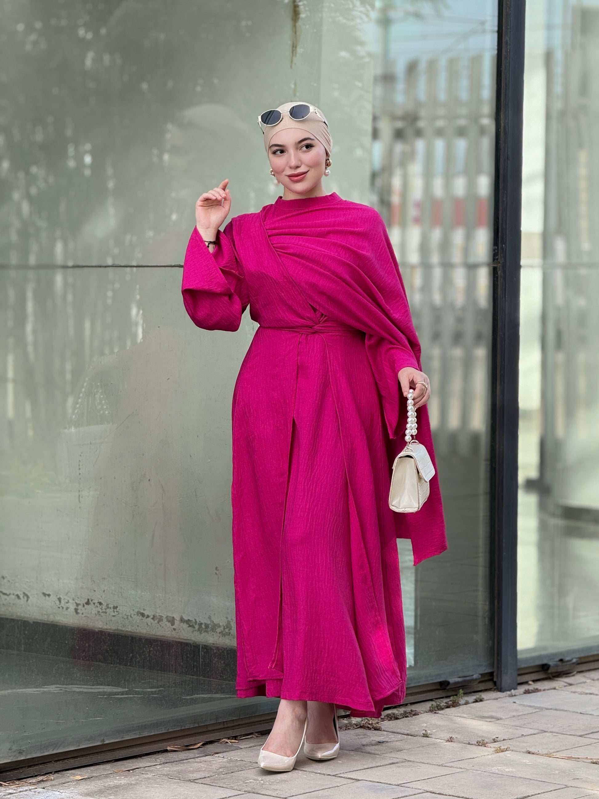 Robe féminine en 3pcs robe & sous robe & châle